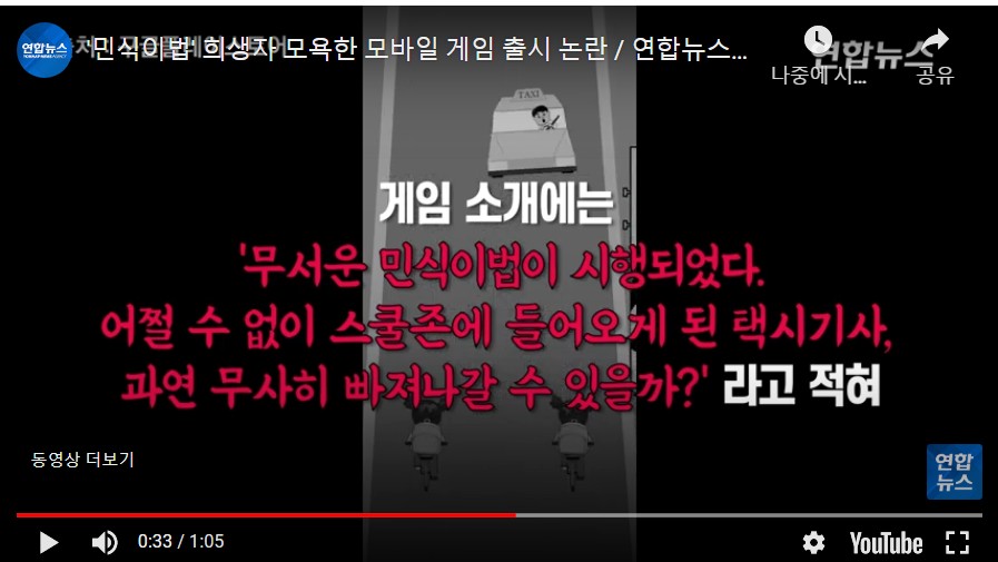 거기에 '민식이법'을 풍자한 모바일 게임까지 출시가 되어 현재 논란 중에 있습니다.